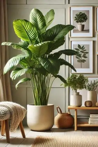 - Flowers & Plants – The Japandi design aesthetic embodies a connection to nature, making plants and flowers ideal decorative elements. Incorporating a Fiddle leaf fig in a large white or grey planter can introduce a splash of colour, while a few stems of fresh or dried flowers on your Japandi coffee table can enhance the sense of freshness and tranquillity. Plants inherently promote calmness and serenity, which you would experience in a space designed in the Japandi style.