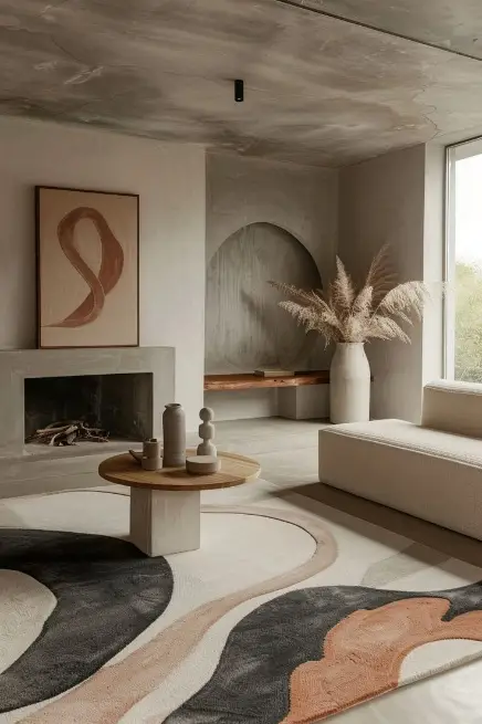 - Monochromatic look – Adopt a monochromatic colour scheme using only three harmonious shades: beige, grey, and white. Introduce a splash of colour through rugs, decorative items, but avoid additional elements. Strive to remain as monochromatic as possible to preserve the tranquil, peaceful atmosphere.