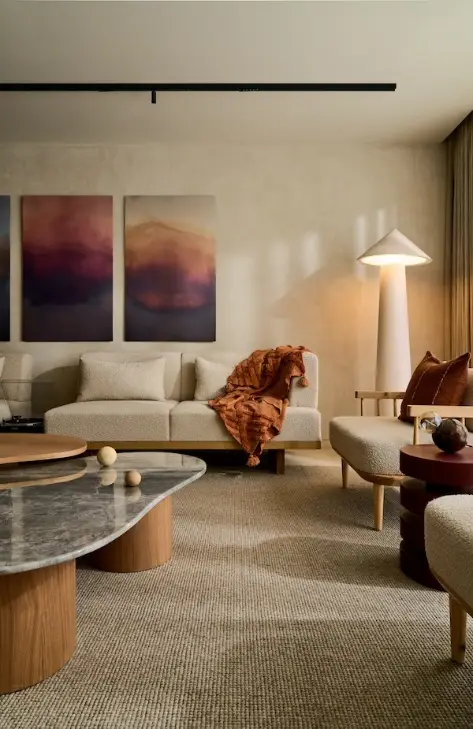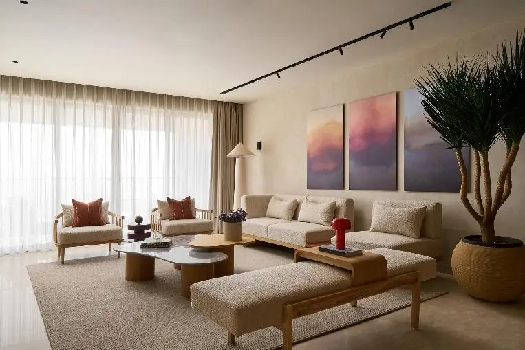 - Clean Minimalism – Japandi interiors favour clean lines and simplicity. The furniture collection maintains a minimalist Japandi style through straight or curved pieces that merge at uniform heights with limited detailing. The design approach produces a flowing visual experience that maintains balance and remains free from clutter. The space maintains a balanced connection through subtle harmony while remaining uncluttered.